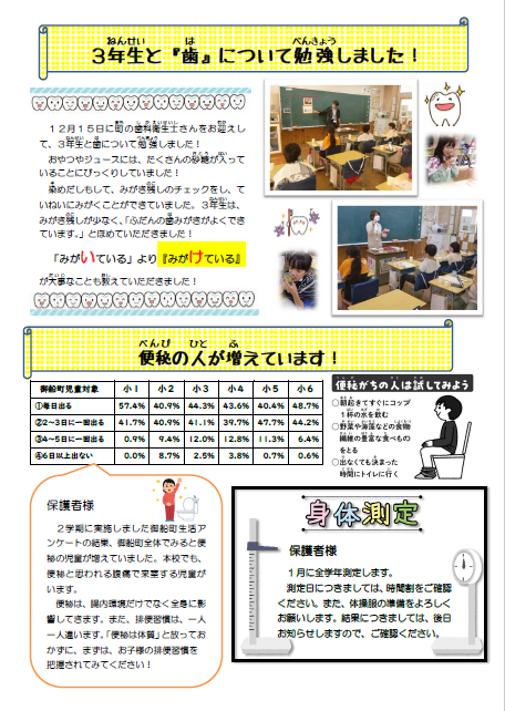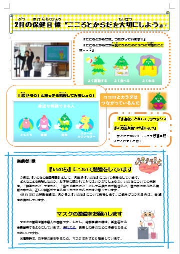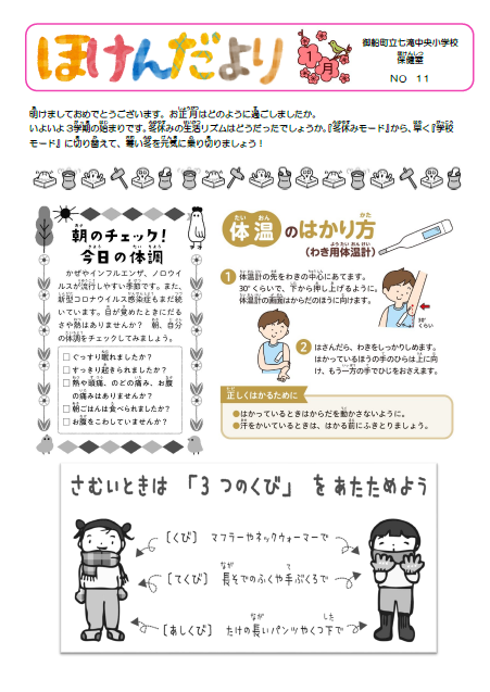本日、ほけんだよりを配付していますので、ぜひご覧ください
