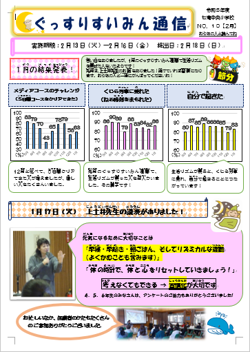 生活リズムが戻っていない人は、このぐっすりすいみん週間で生活リズムを取り戻しましょうご家庭でのご協力をよろしくお願いします