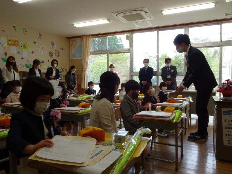 式後は、1年生教室に入り、担任の須藤先生からお話を聞き、教科書などを受け取りました。子供たちは、背筋をピンと伸ばしでお話を聞いていて素晴らしかったです!