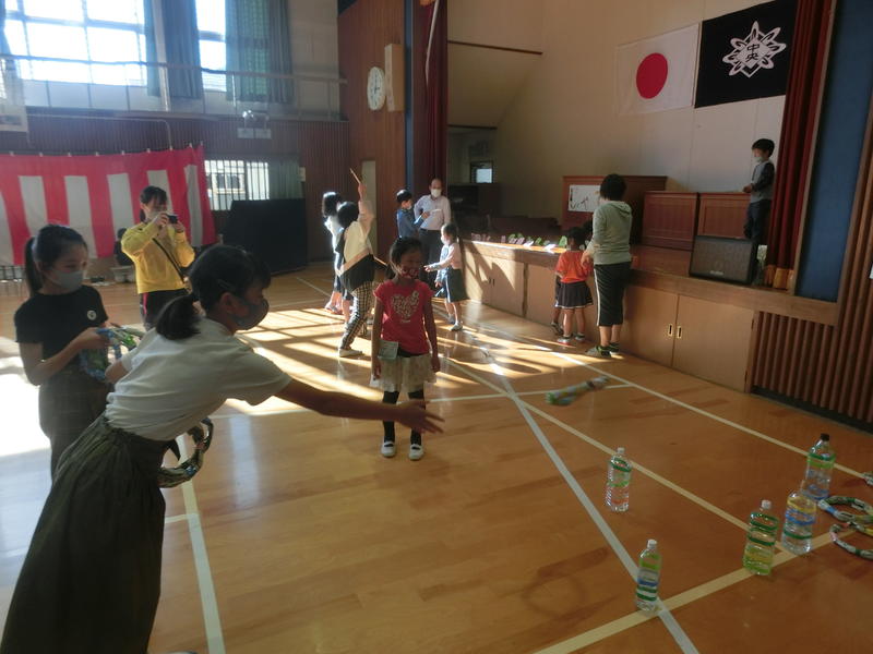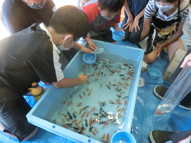 「校内 秋祭り」を開催しました。長洲町農林水産課の長洲金魚PR応援事業でいただいた「金魚すくいセット(200匹用)」で金魚すくいができました。また1・2年生が生活科の学習を生かして射的屋、わなげ屋、ボーリング屋などを開き、6年生が家庭科で「たこ焼き(ウインナー版)」を作ってお祭りを盛り上げてくれました。また、「長洲町ものしりクイズコーナー」や「わたがし屋」なども実施、お祭りは大盛況でした。今年は、コロナ禍で地域のお祭りなど多くのイベントが中止になりました。子どもたちは今日の「校内 秋祭り」を大変楽しむことができました。子どもたちのよい思い出の1日になりました。長洲町のみなさん、大変ありがとうございました(^^)/