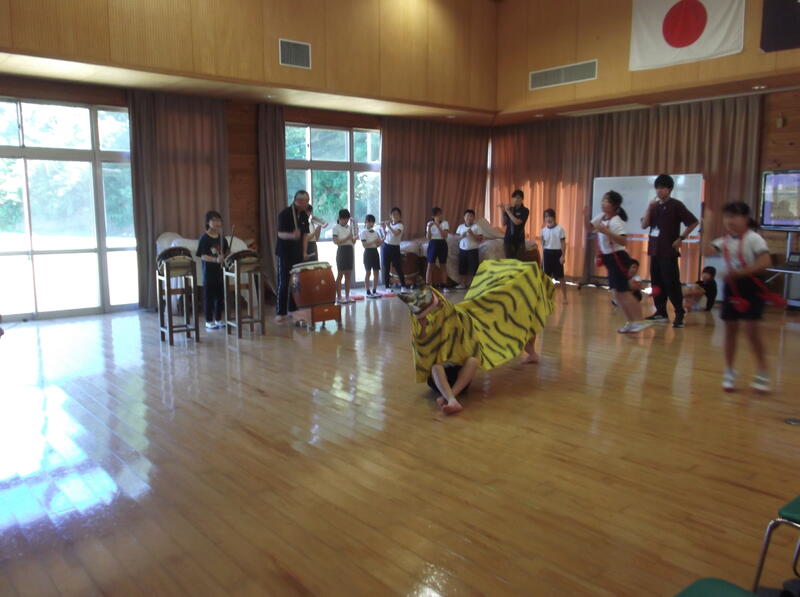 4年生は、25日の平蔵祭りに向けて寅舞保存会の方々に来ていただき、今日も練習をしました。