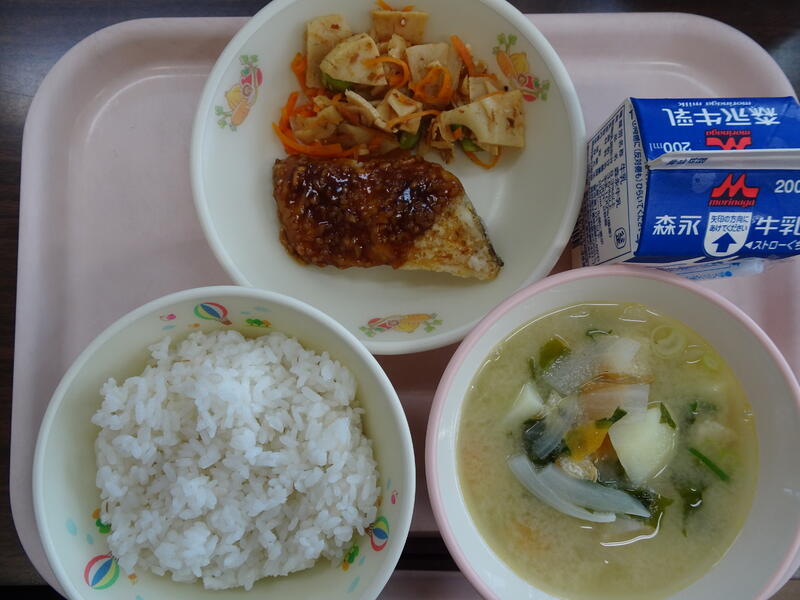 本日の献立:麦ごはん・どさんこ汁・ほっけの照焼・昆布あえ・牛乳
