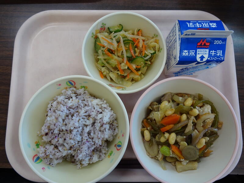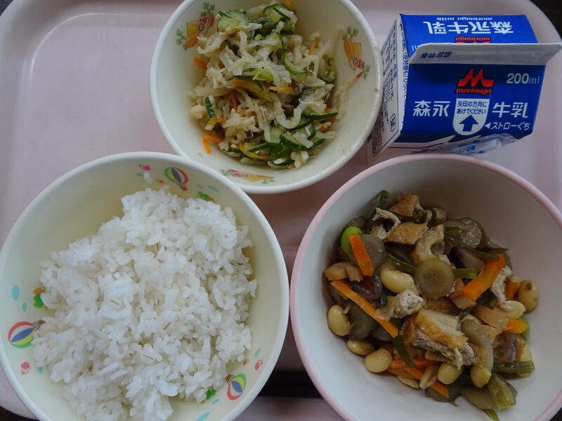 本日の献立:麦ごはん・大豆の磯煮・切干大根の酢の物
