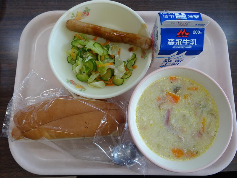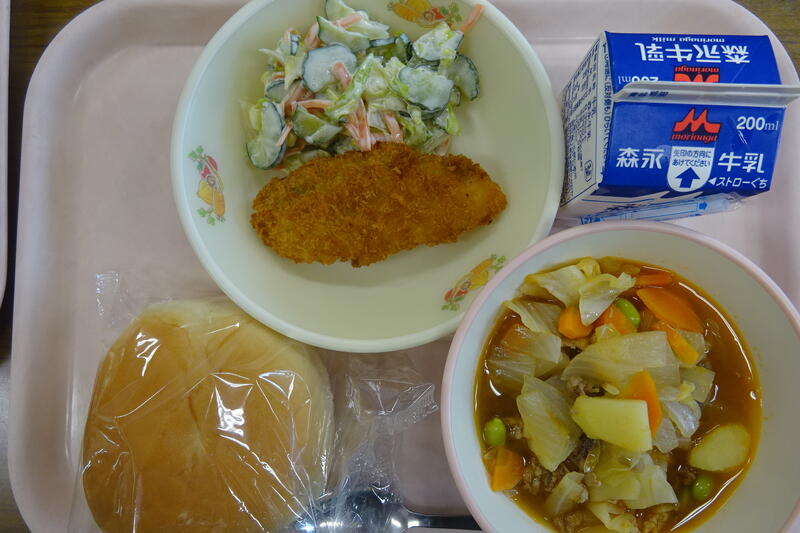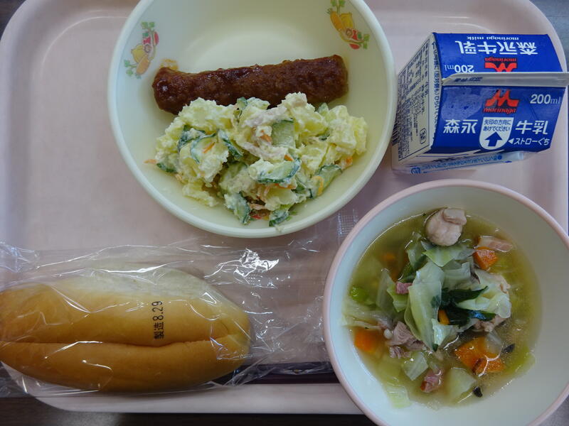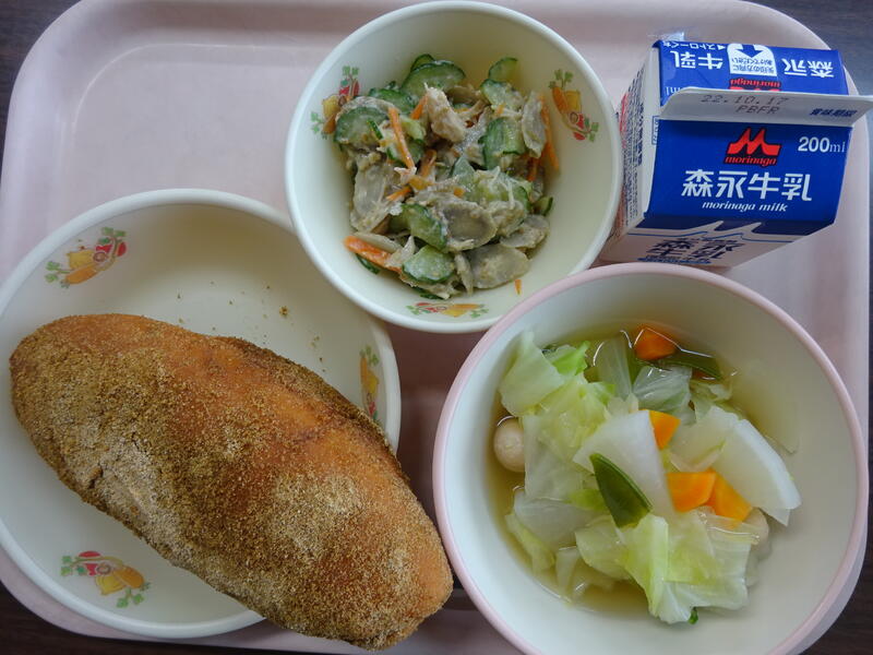 本日の献立:揚げパン・ポトフ・ごぼうサラダ・牛乳