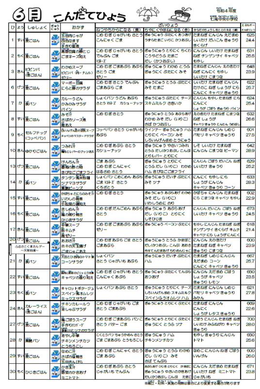 今日からいよいよ6月です。今月も「おいしい給食」をお伝えします!
