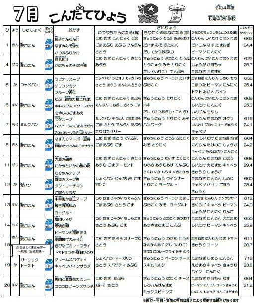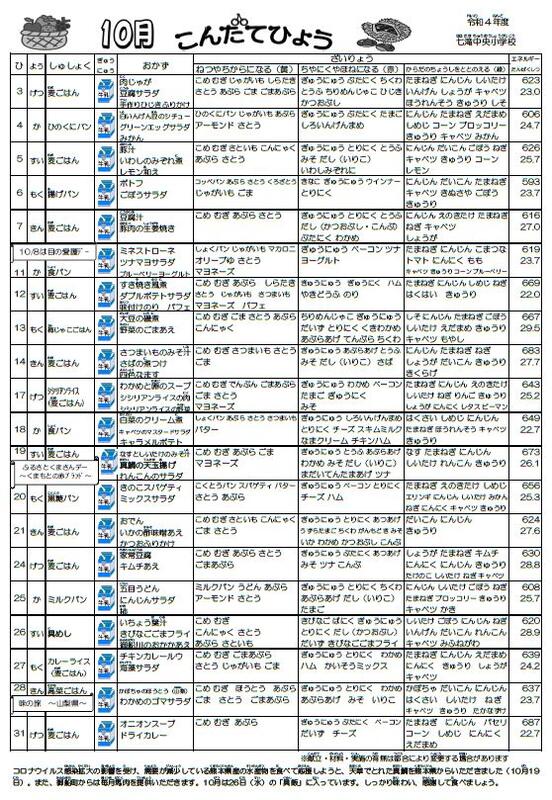 それでは、今月の「おいしい給食」はこ・ち・ら…ですっ♫