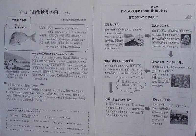 ※今日の給食は、「ふるさとくまさんデー ~くまもとの赤ブランド~」でした。本日の真鯛は、コロナウイルス感染拡大の影響を受け、需要が減少している熊本県産の水産物を食べて応援しようと、天草の真鯛を熊本県から頂いたものです。