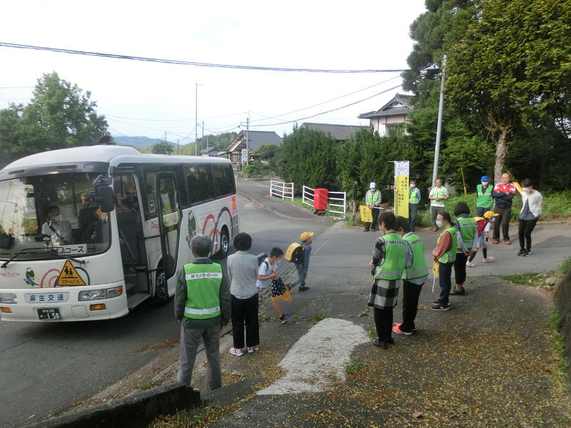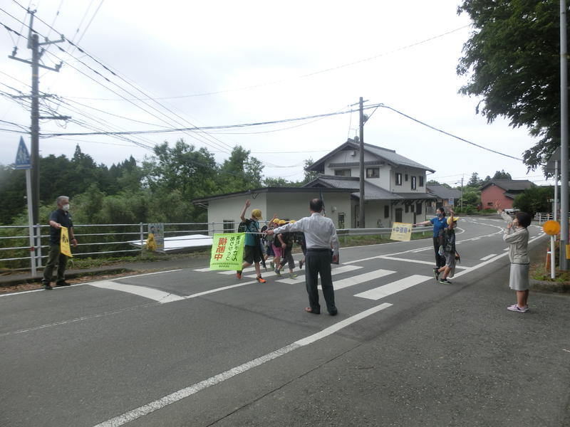 朝の登校の様子。宮川一幸町議、井藤はづき町議が朝の登校を見守ってくださいました。ありがとうございました。