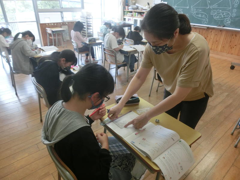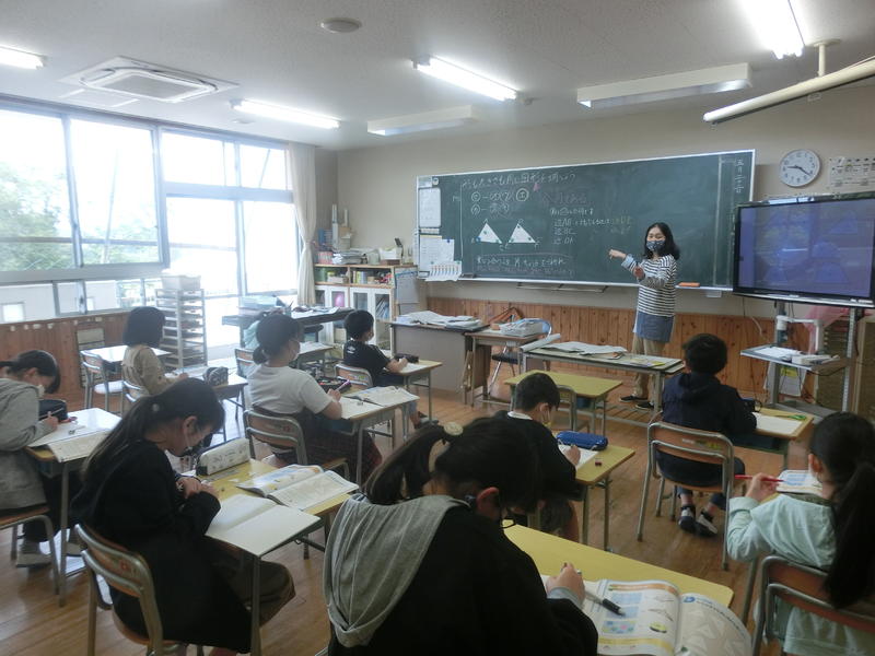 5年生は算数「合同な図形」の学習。みんな丁寧に描いていました。