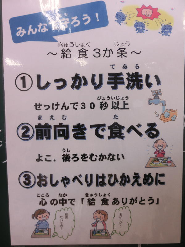 今日から給食が本格開始(簡易給食でない)します。給食の先生、お世話になります。