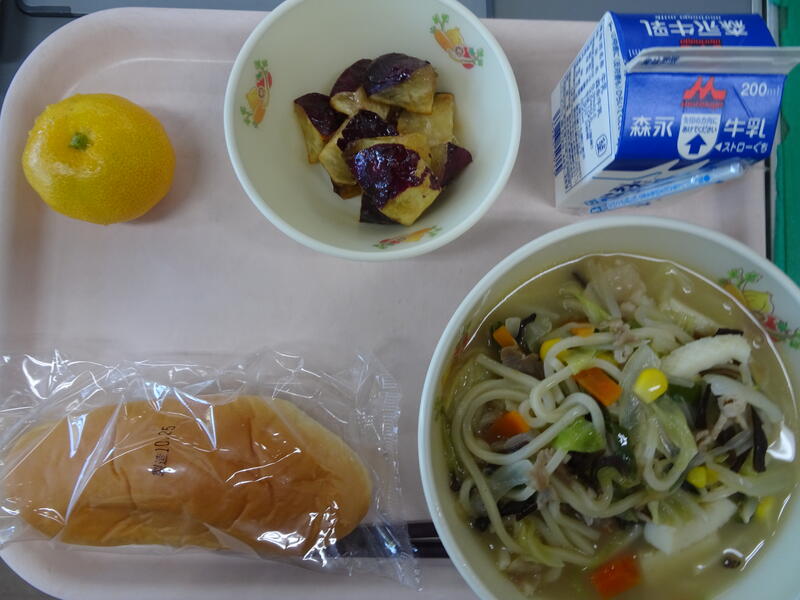 ミルクパン、牛乳、ちゃんぽん、大学芋、みかん