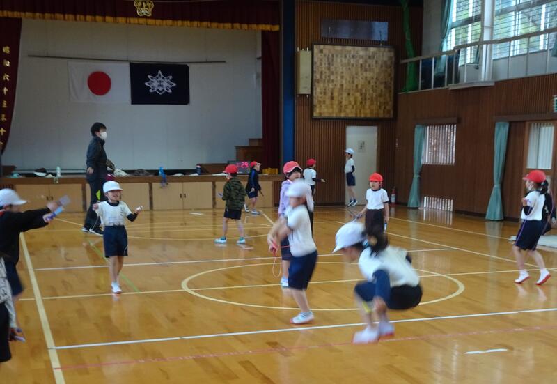 花丸各学級で懇談会があっている間に、子ども達は縦割り班になってなわとびの練習をしました! 体力アップタイムです興奮・ヤッター!