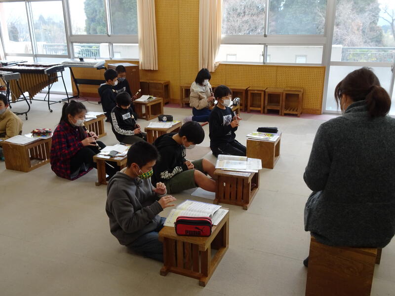 花丸6年生の音楽の学習です。卒業まで残り14日。卒業式で歌う「旅立ちの日に」の2部合唱に取り組んでいます。