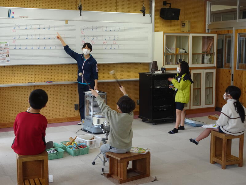 花丸2年生の音楽の学習です。楽器を使って「かぼちゃ」(曲)の演奏をしました。みんなで楽器を交代しながら、たくさん活動できました。