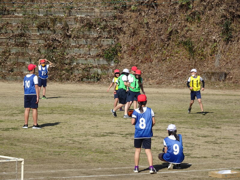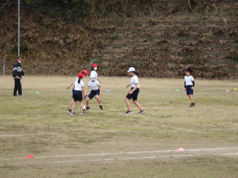 花丸5年生の体育の学習です。暖かい日差しの中で、サッカーをしました。それぞれの役割も果たしながら楽しく活動できました。