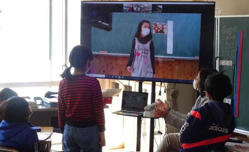 花丸2年生の国語「楽しかったよ2年生!」の学習です。2年生の思い出をまとめ、3年生や4年生へ向けて、オンラインで発表しました。