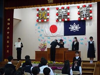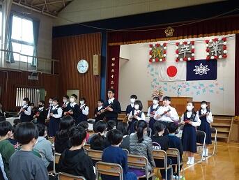 3月23日(木)10時から「第16回卒業式」を行いました。3年ぶりに1年から5年までの在校生全員で卒業生16名の門出を祝うことができました。中学校の制服に身を包んだ卒業生の「卒業生お別れの言葉」と合唱「旅立ちの日に」は堂々として大変立派な姿で感動しました。在校生からは「委員会活動の時、すぐに行動できて、かっこよかったです!」「〇〇さん、たくさんおんぶしてくれてありがとう!」など卒業生一人一人へ一緒に過ごした思い出と感謝を伝えました。感謝の気持ちが溢れ、胸が熱くなる式でした。
