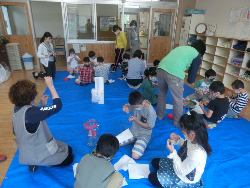 1・2年生は生活科「梅ジュースづくり」。おいしい梅ジュースができますように