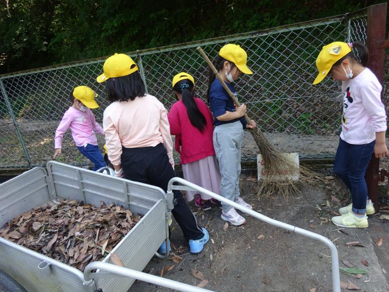 1、2年生はプールサイドの落ち葉掃きや草取りを頑張りました!!