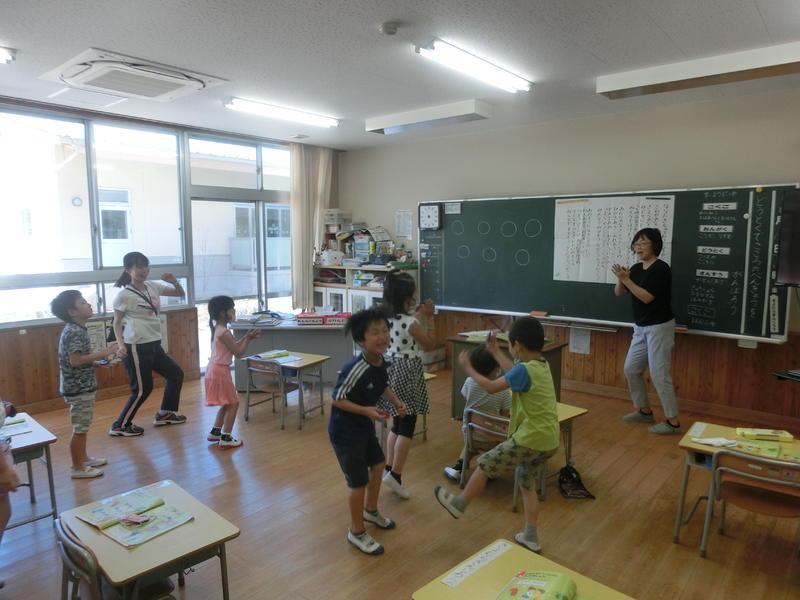 1年、音楽。校歌の歌声が聞こえてきたかと思いきや、元気なダンスのかけ声も聞こえてきました。みんなノリノリで踊っていました(^o^)