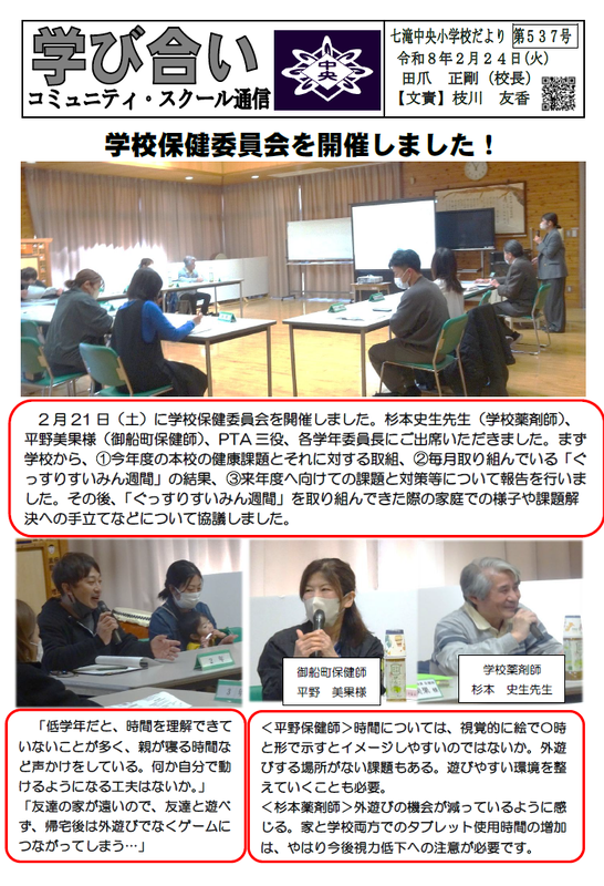 学び合い(コミュニティ・スクール通信)Vol.537 をアップしました。
