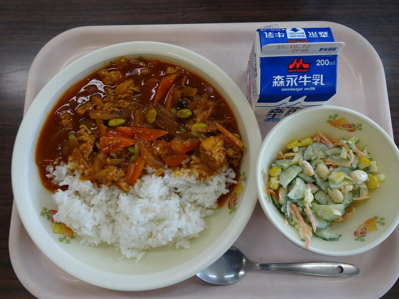 本日の献立:ハヤシライス・大豆のサラダ・牛乳