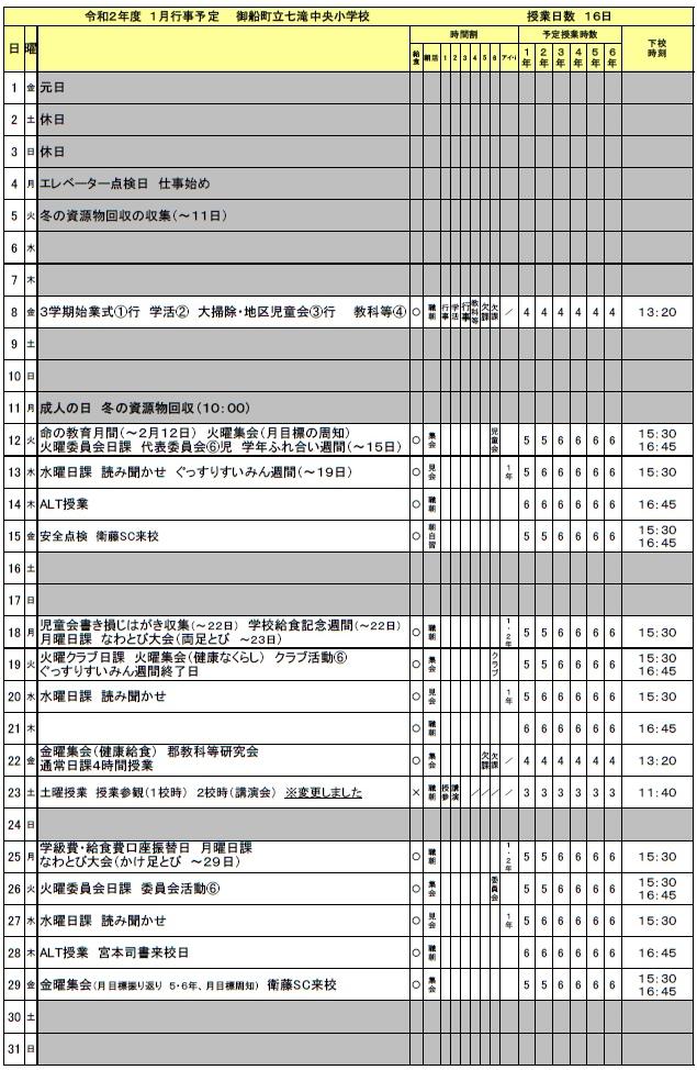 ※1月22日(金)は、4時間授業で13:20下校となります。
