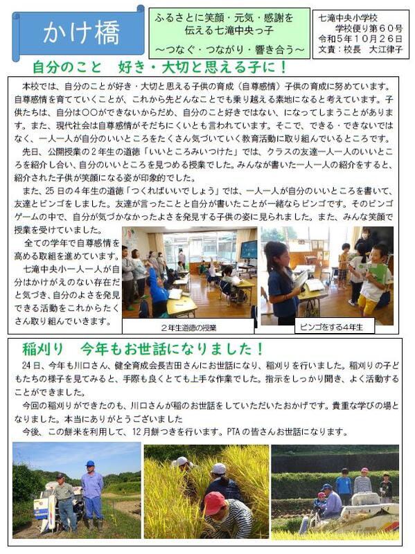 学校だより(10/3号)を更新しました。どうぞご覧ください。