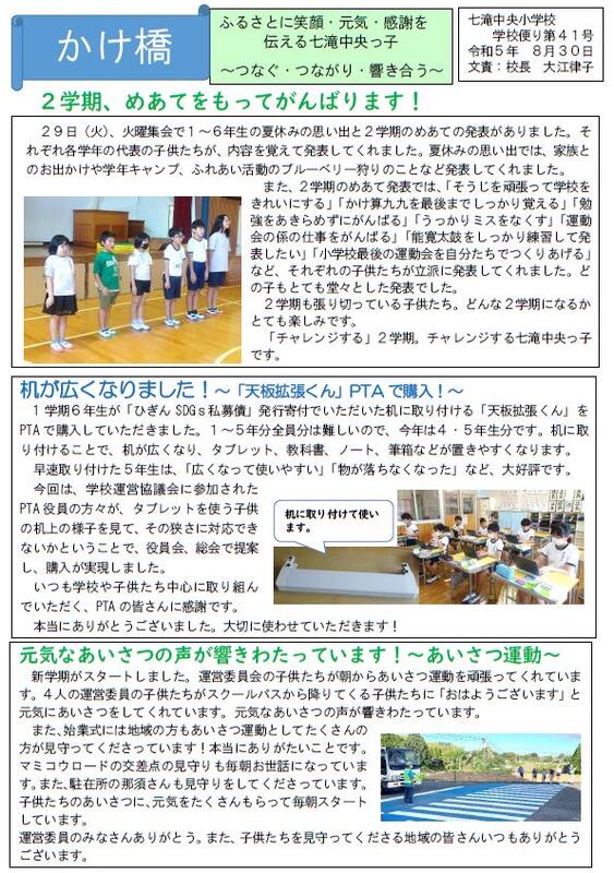 学校だより(8/30号)を更新しました。どうぞご覧ください。