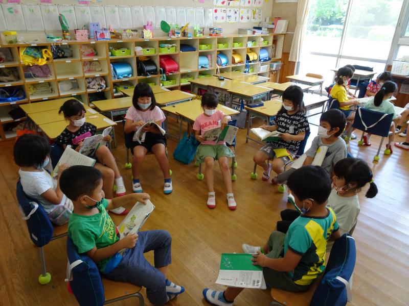 1年生の国語の時間です。グループで集まって「おおきなかぶ」の音読の練習をしていました!!
