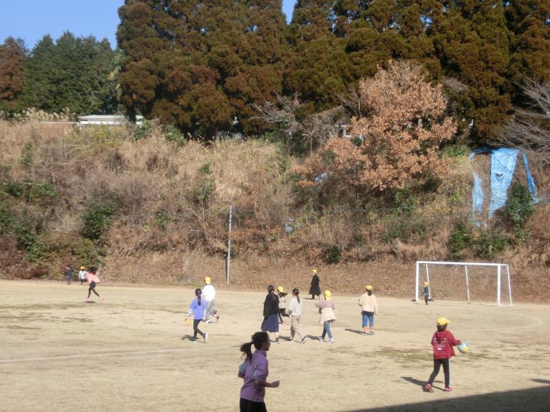 お昼休みは、ぽかぽか陽気で、たくさんの子供が運動場を走り回って遊んでいました。みんなで体を動かして遊ぶと気持ちがいいですね(^^)/