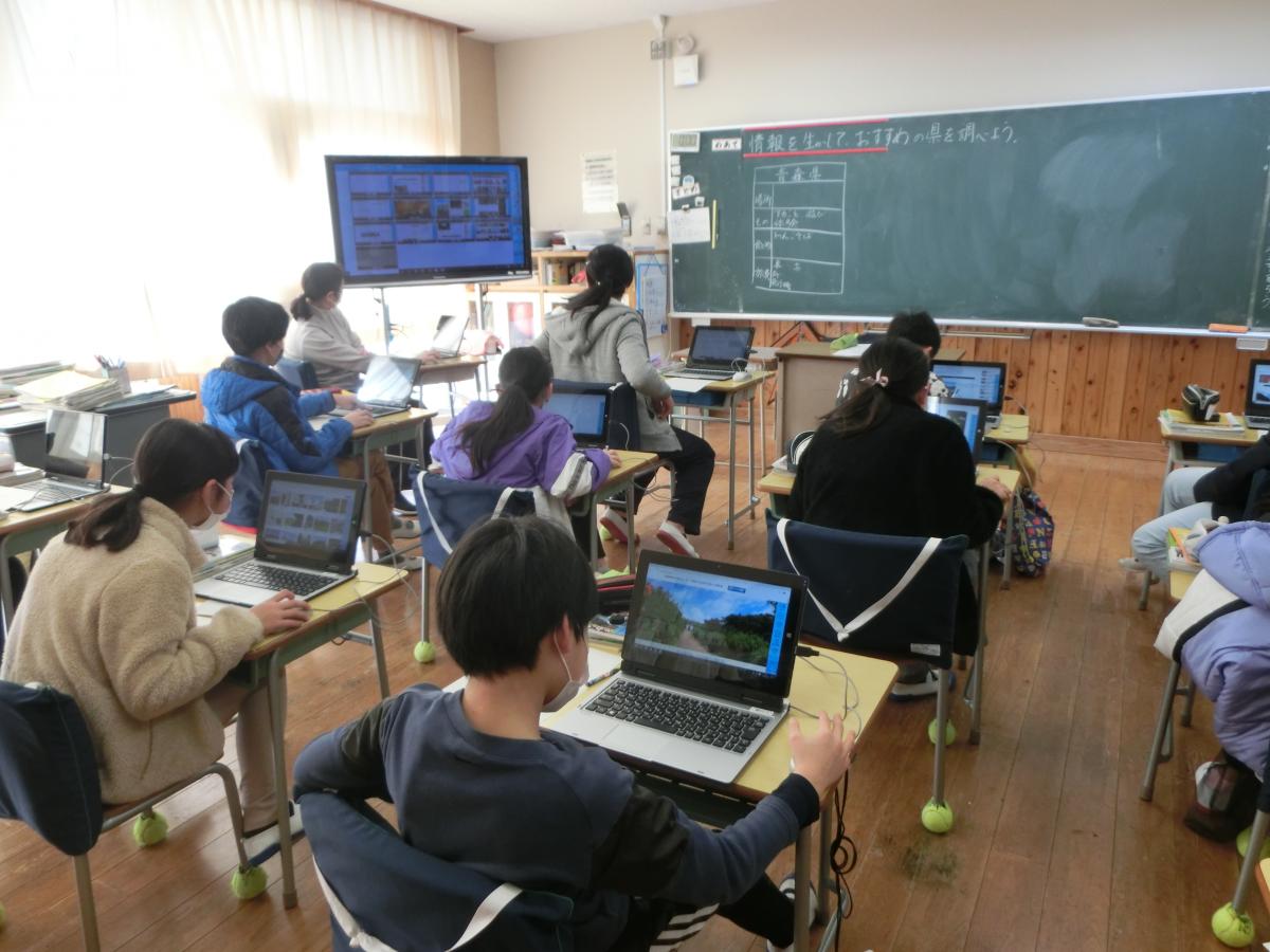 4年生は道後的な学習の時間で「御船町の紹介プロジェクト」の学習をしていました。インターネットで御船町の文化や産業、観光などを調べていました(^^)/