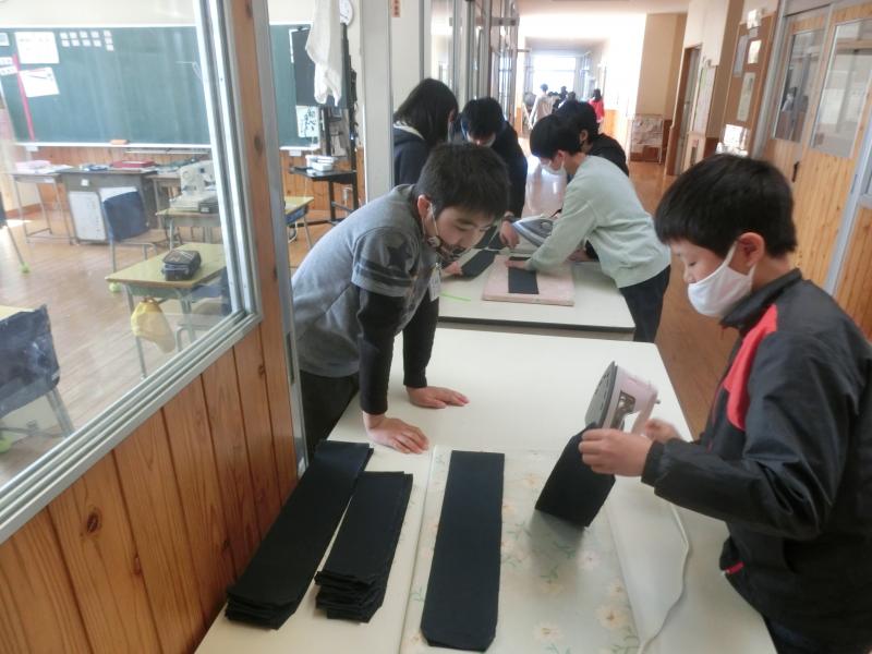 5年生は家庭科「ミシンにトライ!手作りで楽しい生活」を学習していました。5年生にとって初めてのミシン操作、友達と協力してミシン縫いを頑張っていました。ナップサックの完成か楽しみです(^^)/