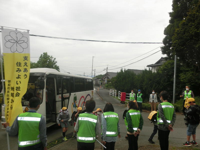 地域の藤本繁美さん(西上野区長会代表)が、登校班の安全見守りをしてくださいました。