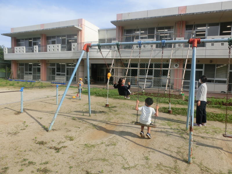 朝からブランコ遊び、楽しそう。