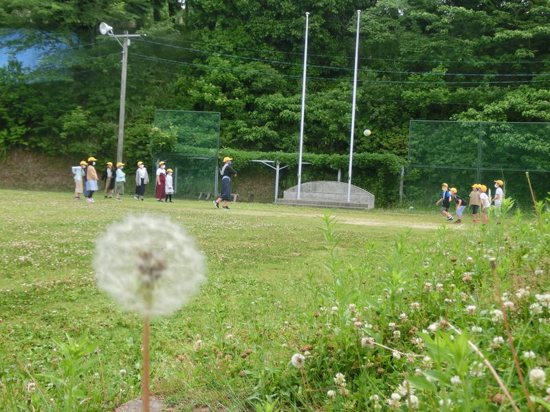 1時間目の休み時間は、28名の児童が外遊び。10分間の短い休み時間でも、みんなと遊ぶと楽しいですね。運動場のたんぽぽも、みんなの様子を見守っています。