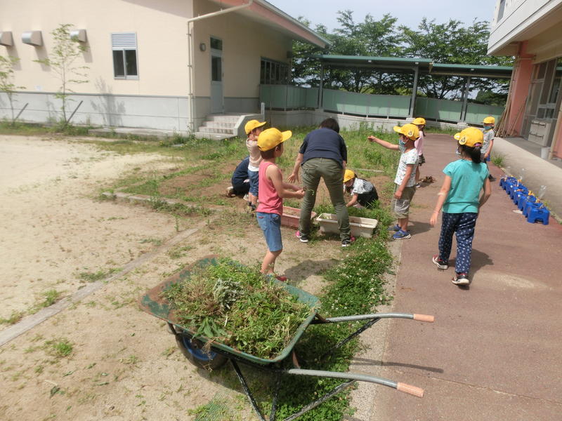 1年生は学級園の草取りをがんばっていました。虫さんも発見したようです。