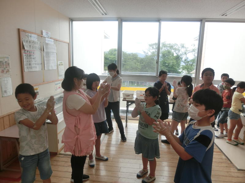 給食前の手洗いをしっかりしていますね。