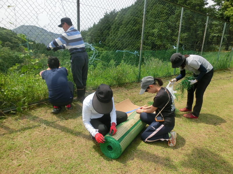 全長60ⅿのフェンスにネットを張りました。