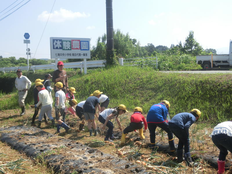 2・3年生は「玉ねぎ収穫」。たくさん収穫できました。早速月曜日のカレーライスが楽しみですね。ご協力いただいた南田代地区の6名の方々、ありがとうございました。
