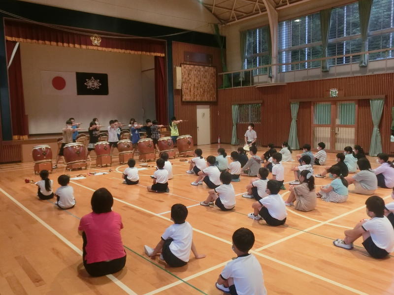 今日の金曜集会は「やまびこ集会」でした。やまびこ集会では、学年ごとに学習の成果等を発表します。今週は6年生が音楽で学習した合奏と、「新風太鼓『響』」の披露をしました。また、発表後のみんなからのお返し感想もとても上手でした(^^)/