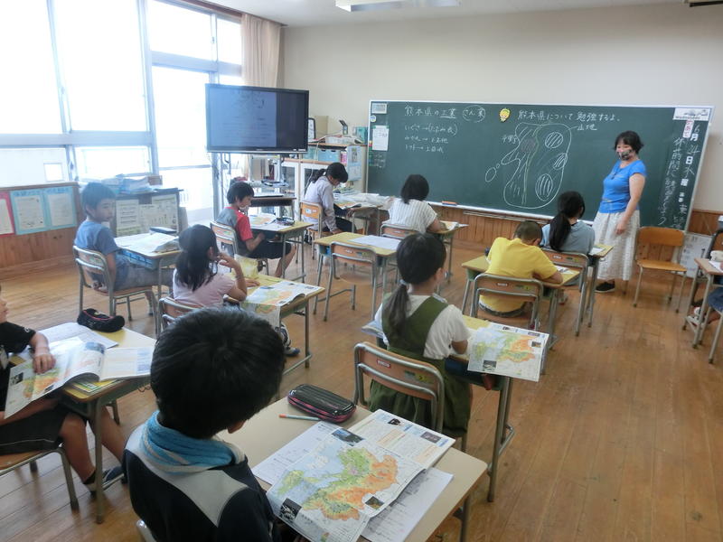 4年、社会「県の広がり」。熊本県の各地域の土地やくらしの特色を勉強していました。「熊本市は大都会です。サクラマチがあるからです。」と発表する子どももいました。印象的だったんでしょうね(^^)/