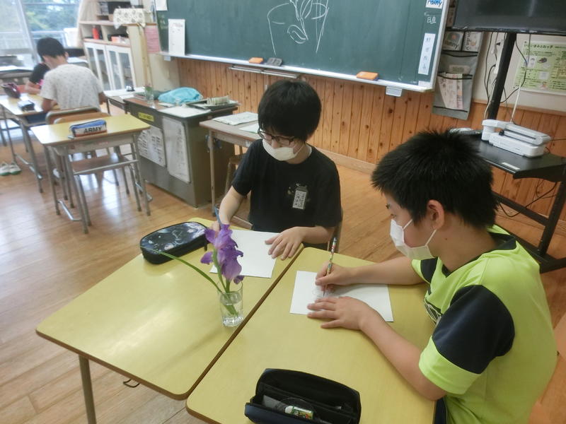 6年、図工「花の絵を描こう」。じっくり丁寧に描いていました。完成が楽しみです(^^)/