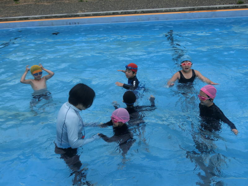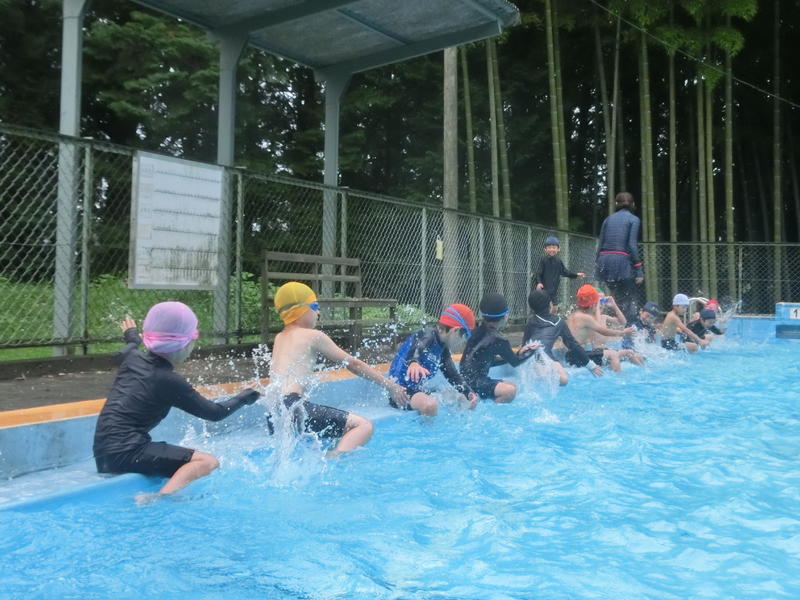 1・2年生は今日がプール開きでした。本年度は学年ごとにプール開きをします。1年生の今日の生活のめあては「先生の話を聞いて水と仲よくしよう。」でした。1年生のある子は「水と仲よく…、水と仲良く…」とつぶやくながら活動していたそうです(^^)/うずまきを作ったり2年生におんぶしてもらったり、楽しいプール開きができましたね。