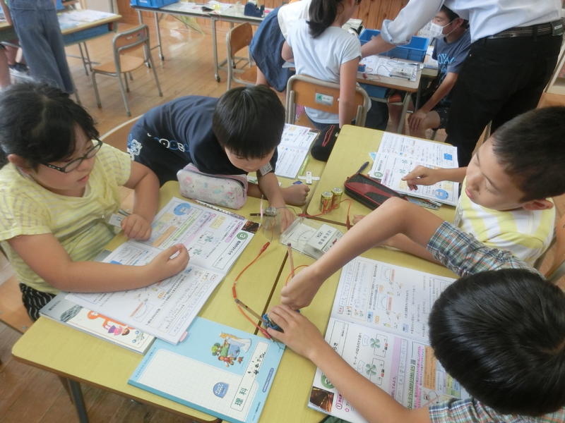 4年生は理科で、電流の向きを調べる学習をしていました。電池の向きを変えてみるなど意欲的に取り組んでいました。