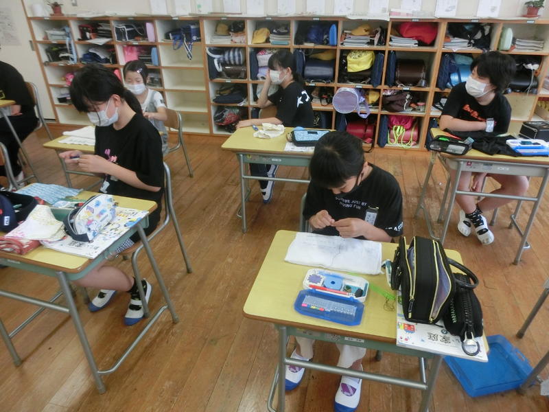 5年生は家庭科で裁縫に挑戦。半返し縫いを丁寧に練習していました(^^)/