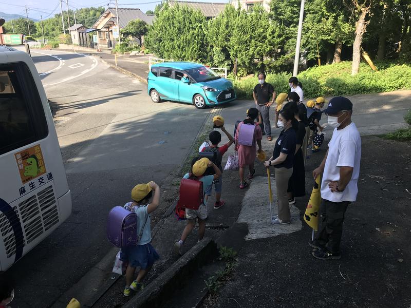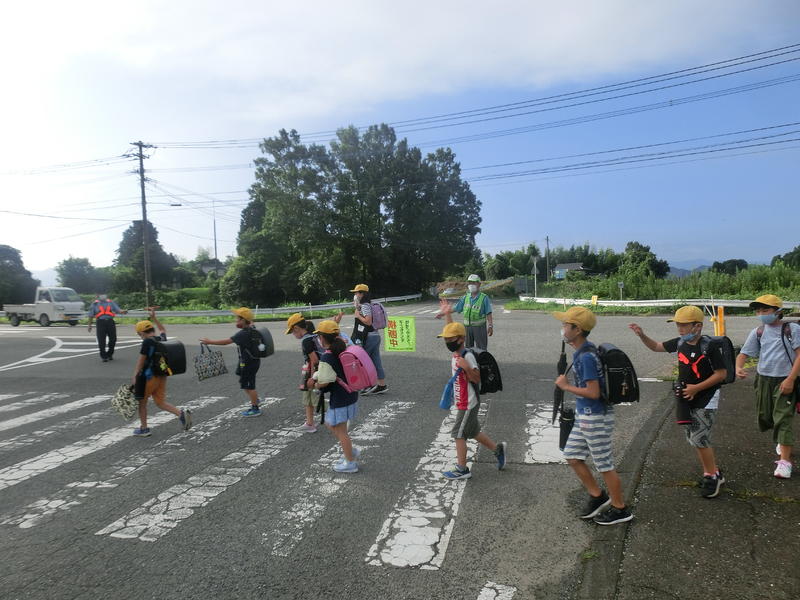 朝の登校。7月20日から、川口勝行さん(学校運営協議会会長)が、スクールガードリーダーとして、朝の登校の安全を見守ってくださっています。おかげで子どもたちは安心して登校できます。毎朝、大変お世話になります。