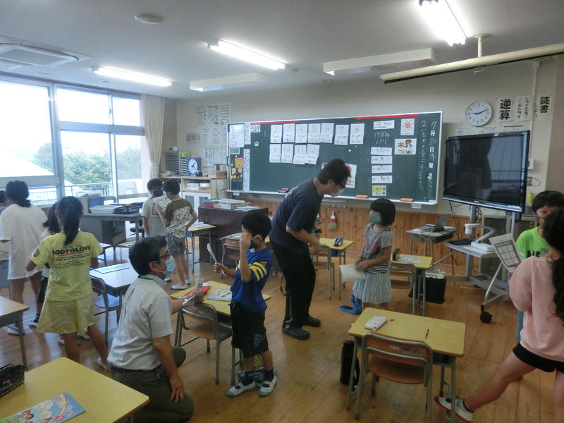 今日は1年生から6年生まで着衣水泳を行いました。服を着たまま水に入った感覚の違いや、長く浮くための方法を体験的に学びました。夏休み中、水の事故に注意しましょう!