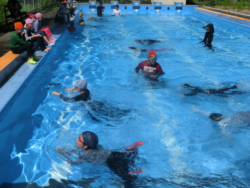 1・2年生は、プールで水泳をしました。だるま浮きやラッコ浮き、蹴伸びなど練習に取り組み、随分上達しました。水中トンネルもくぐれるようになりました(^^)/