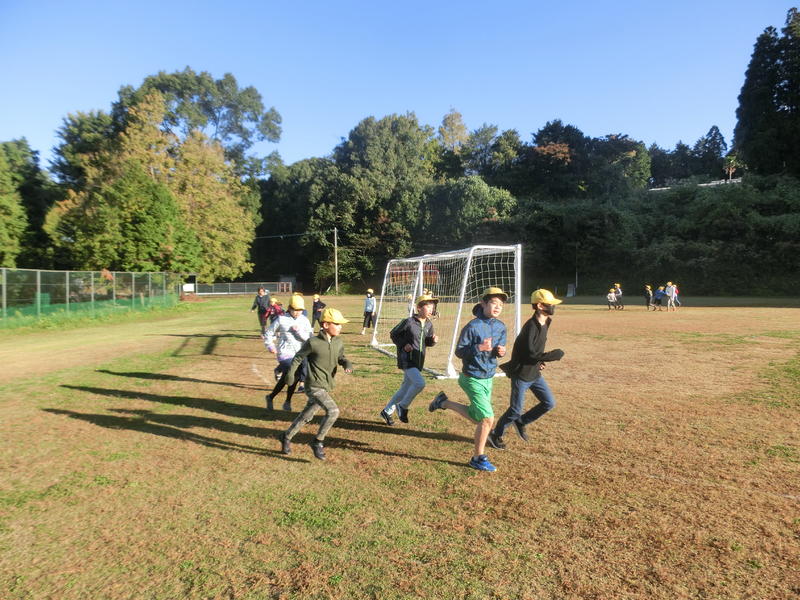 花丸朝のランニング。スポーツの秋!今日は全児童が運動場に出て、気持ちのいい汗を流していました。自分のペースでしっかりランニングに取り組んでいます(^^)/